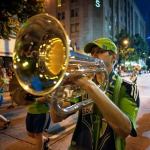 It’s only about 2.5 miles from the Space Needle to Qwest Field along the route of the Seafair Torchlight Parade, but if you’re in the parade, near the end, it takes many hours to get there. That’s what I learned last Saturday, when several other members of the Husky Alumni Band and I mixed in with the UW Varsity Marching Band to play our music along the parade route through downtown Seattle. The obvious enthusiasm and pleasure of the hundreds of thousands of spectators of all ages who lined the streets made the whole event very fun for us all. And the weather was perfect. Oh, what a night!