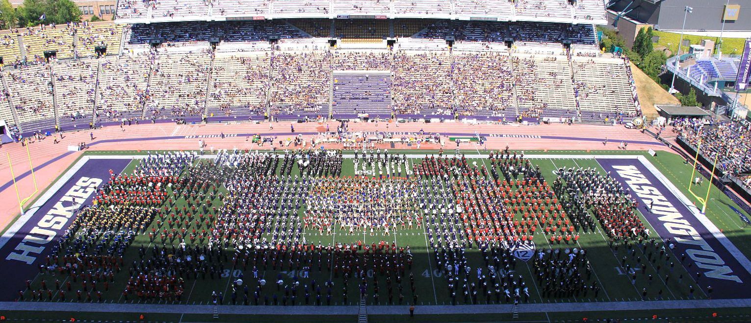 We were standing on the field of Husky Stadium last Wednesday night, about to begin a three-hour rehearsal with the Varsity Band in preparation for the pre-game and half-time shows at this Saturday’s football game, opening the new season. The Huskies are playing the Eagles from Eastern Washington University in Cheney, near Spokane. Last season, the Eagles won the 20-team playoff and are the 2011 national champions of the Football Championship Subdivision (FCS) of the NCAA. And this year, they are again ranked No. 1 in the nation in the pre-season polls. FCS is only one level below the Football Bowl Subdivision (FBS) in which the Huskies play.