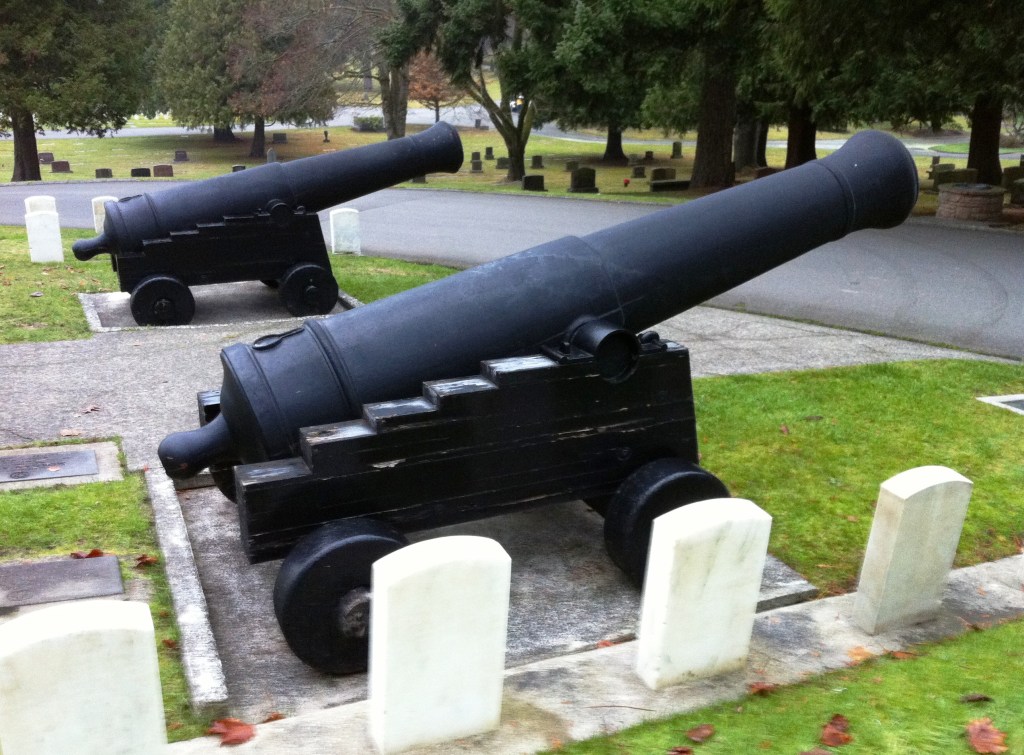 Two 32-pound long-rifle cannons from U.S. frigate “Constitution” (“Old Ironsides”) were dedicated here on 9 June 1933. Each weighs 4,275 pounds.