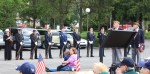Clearly, someone carefully chose the rhododendron species at Veterans Park in Lynnwood where the Memorial Day ceremony was held on Monday, 28 May—the dark pink flowers were still in full bloom as two wreaths were laid in honor of those American military men and women who died during our wars.