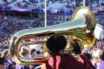 Here’s how the bands did it—see the photo gallery below. As always, trumpeters are featured. Field-level shots were taken by Louis Figueroa, and press box shots were by Garry Nakayama. Please click on any photo to enlarge it.