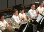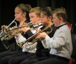 On 4 December 2014, the two elementary bands (1st year and 2nd year) which are affiliated with Skyview Jr. High School in Bothell played their first concert of the school year in front of an adoring, proud crowd of parents, relatives and friends in the cafeteria/auditorium. Below is a photo gallery of the concert, with an emphasis on the brass section, whom I teach. Shawn McGinn, Director of Instrumental Music, conducted the concert and graciously allowed me to conduct the final piece by the 2nd-year band. Please click on any photo to enlarge it.