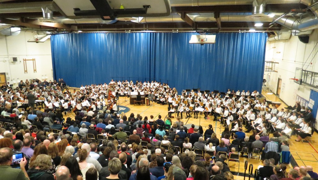 NSD 6th Grade Honors Band (right), Choir (center), and Orchestra (left)