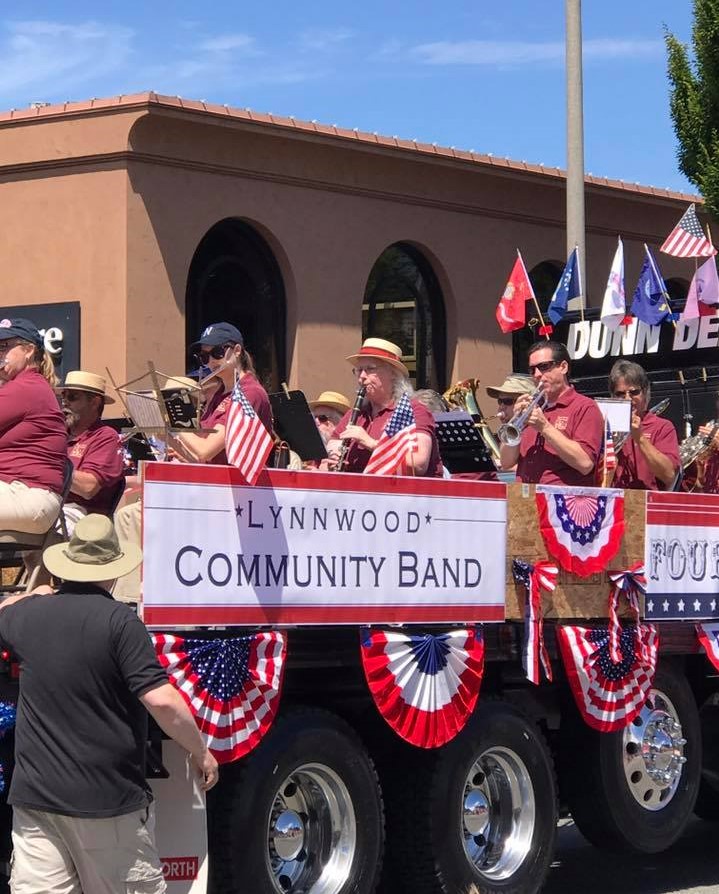Lynnwood Community Band plays the famous march, “Washington Post,” at Edmonds Independence Day Parade, 2017