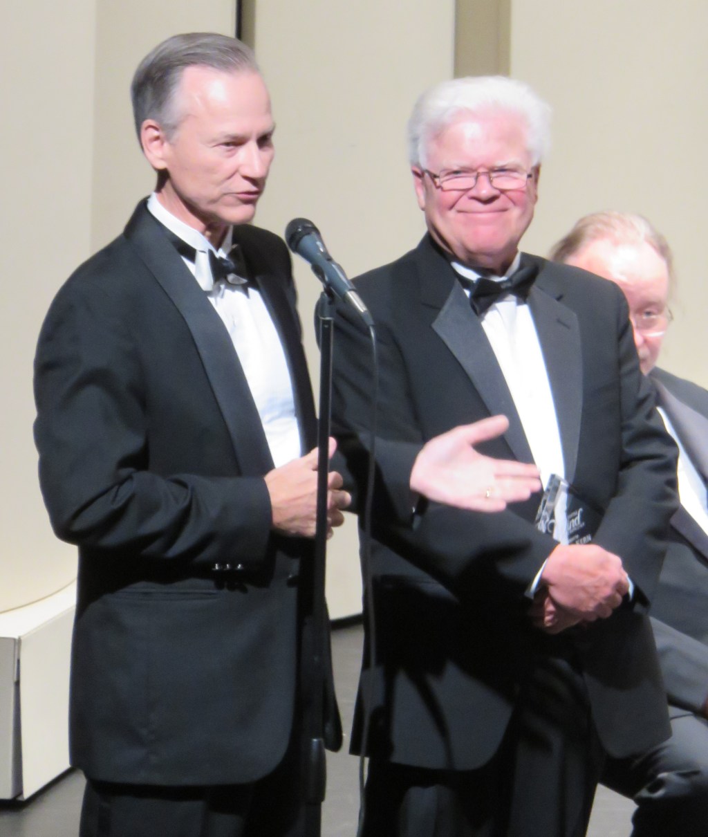 Dr. Wayne Bailey (L) honors Gerard Kern (R), Clarinetist and Founding President, Seattle Wind Symphony