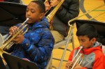 Ben Fowler teaches flutes, Matt Simmons teaches woodwinds, and Jane Lin teaches percussion and also is the music teacher at Crystal Springs Elementary. The section which I teach is Brass Instruments (trumpets and trombones). It is the largest group in the band—25 trumpeters and 5 trombonists—one of the best at this stage of the school year that I’ve taught in 7 years.