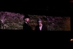 or dances. In one comedic relief scene, a barbershop quartet is featured as they rehearse “Deck the Halls.” Instead, the orchestra and choir, under the direction of Linda Collins, perform music to open and close the drama; intersperse different scenes with songs; and provide soft, instrumental music (underscore) while the actors continue with the play. The stage sets employ mixed media: some outdoor scenes are presented by videos on three huge screens above the stage floor. The entire drama takes