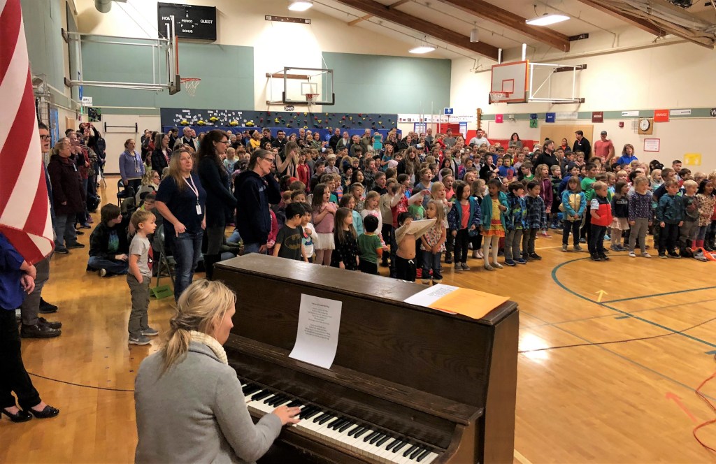 Veterans Day ceremony, Cottage Lake Elementary School, Woodinville, with Kelsey Brady on piano, 11-09-2018