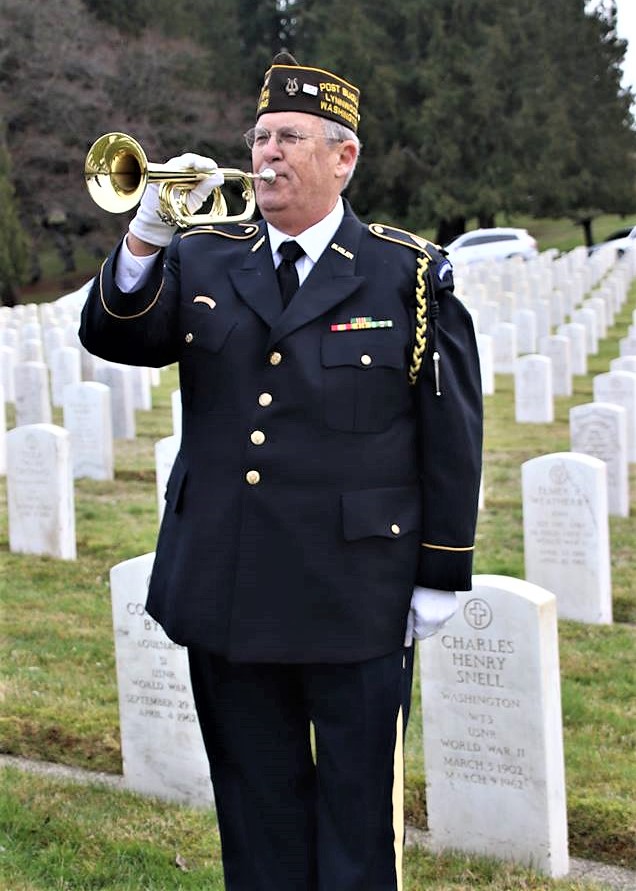 “Taps” at 9th Annual Wreaths Across America Ceremony at Evergreen-Washelli Cemetery in Seattle » glenn ledbetter, vfw post 1040 bugler
