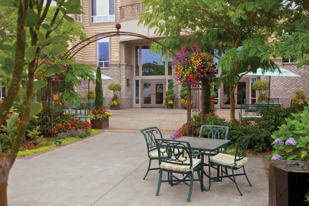 Trumpet Show, “I Stand for the Flag,” at Ida Culver House Broadview in North Seattle » ICH-Broadview-senior-living-outdoor-garden-terrace