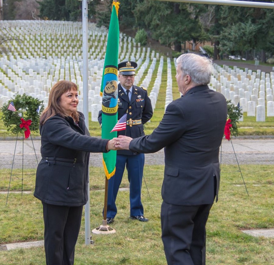 “Echo Taps” and “Assembly” Bugle Calls at 10th Wreaths Across America Ceremony at Veterans Cemetery in North Seattle » 48357758_10219020387366843_5482786376254488576_o