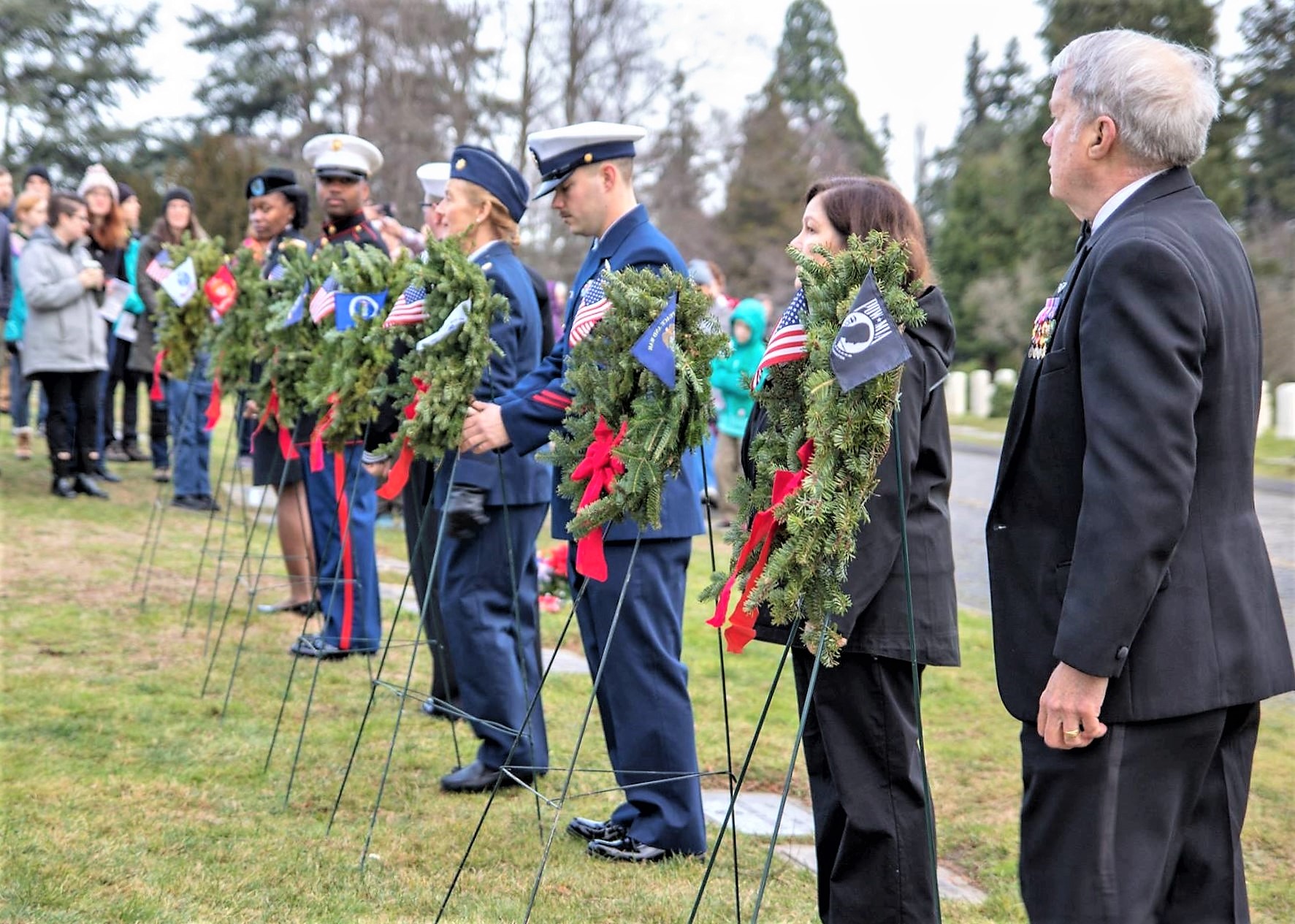 “Echo Taps” and “Assembly” Bugle Calls at 10th Wreaths Across America Ceremony at Veterans Cemetery in North Seattle » 48360601_10219020386606824_424136022004072448_o