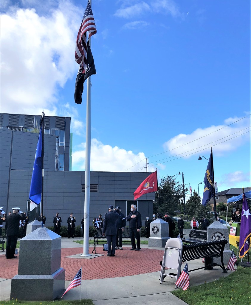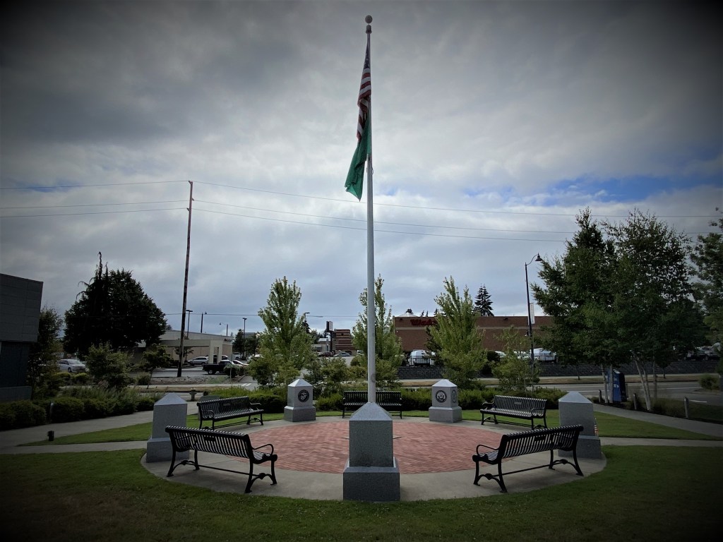 During a recent six-week span, Shoreline City Hall was the scene of four major military ceremonies held outdoors at the adjacent Veterans Recognition Plaza which was dedicated on 21 May 2016. The ceremonies were organized and led by a Shoreline resident, Major General Ray Coffey, United States Volunteer Joint Service Command (USVJSC)