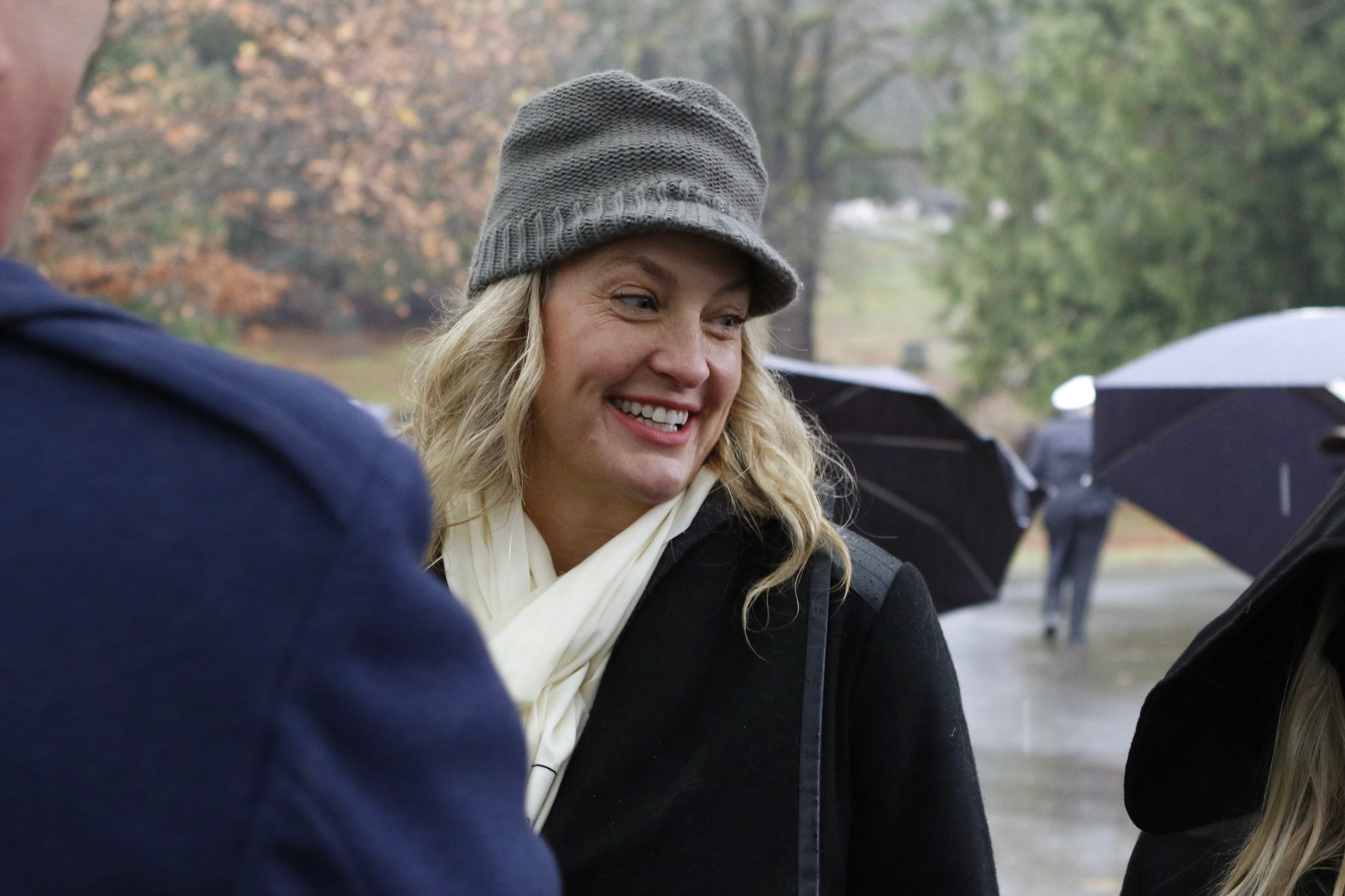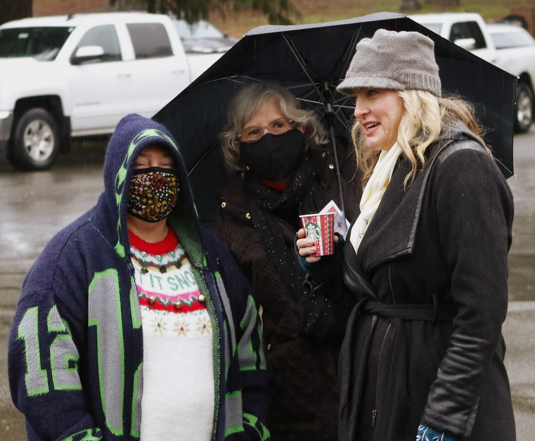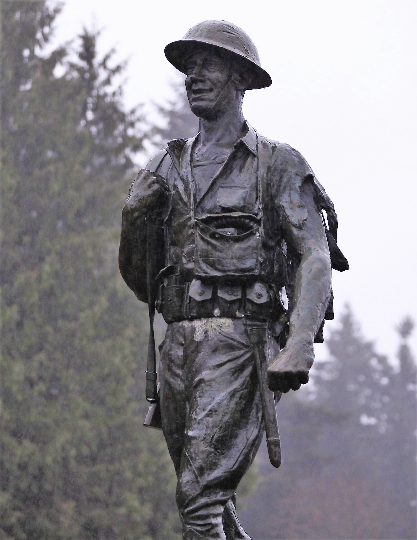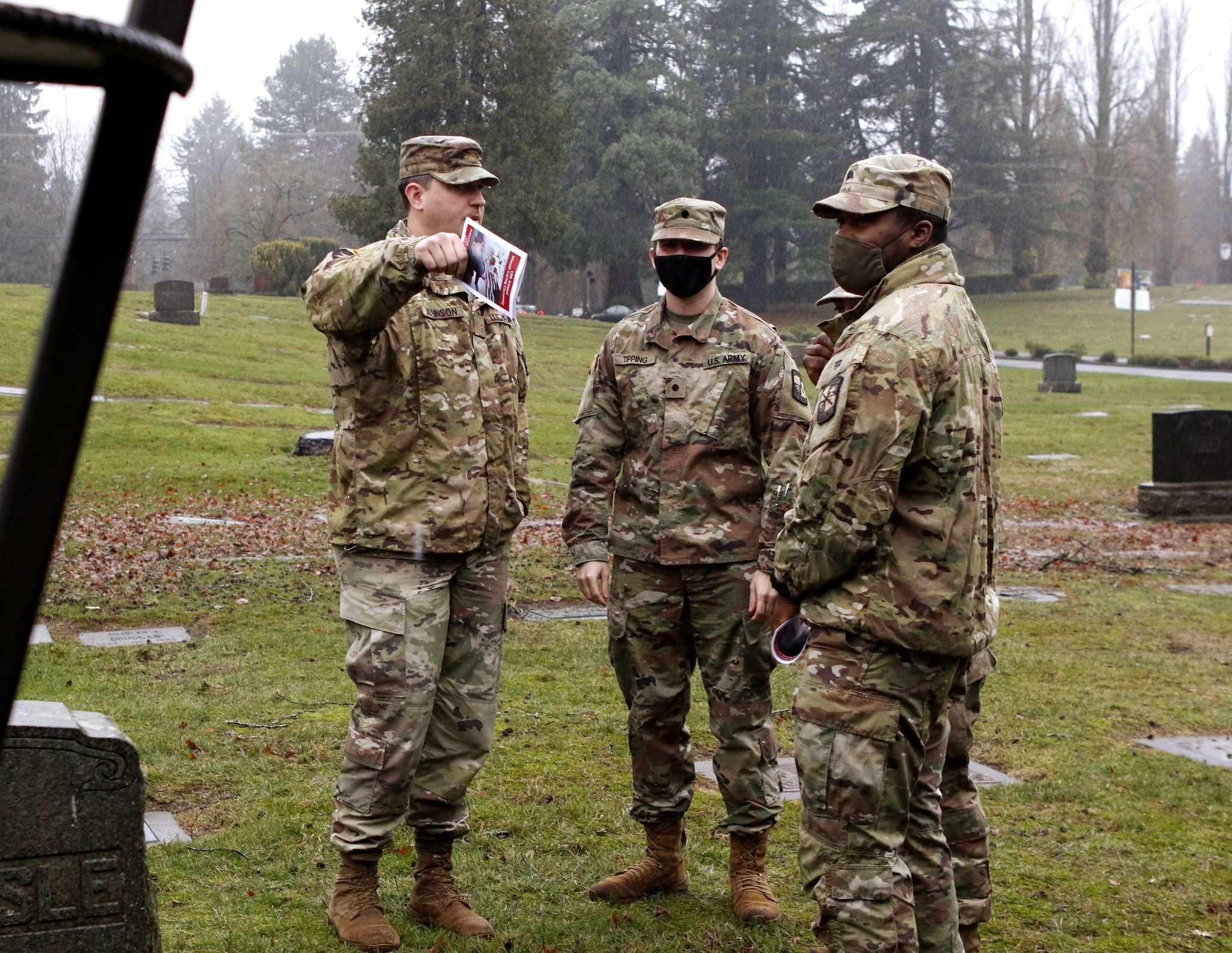 The third Saturday of December was the 18th, and that could mean only one thing to a bugler—it was time for the annual Christmas wreath-laying ceremony, Wreaths Across America (WAA). Never mind that it was raining steadily. At 9 a.m., the President and Executive Director of the Veterans Memorial Wreath Foundation, Lorraine Zimmerman, announced over the loud speaker, “Bugler, sound ‘Assembly!'” And so I did for the 11th time. Then the Color Guard of the Navy ROTC program at the University of Washington presented the colors, and the crowd of about 200 patriots pledged allegiance to the flag. Chaplain Linda Haptonstall gave the invocation.