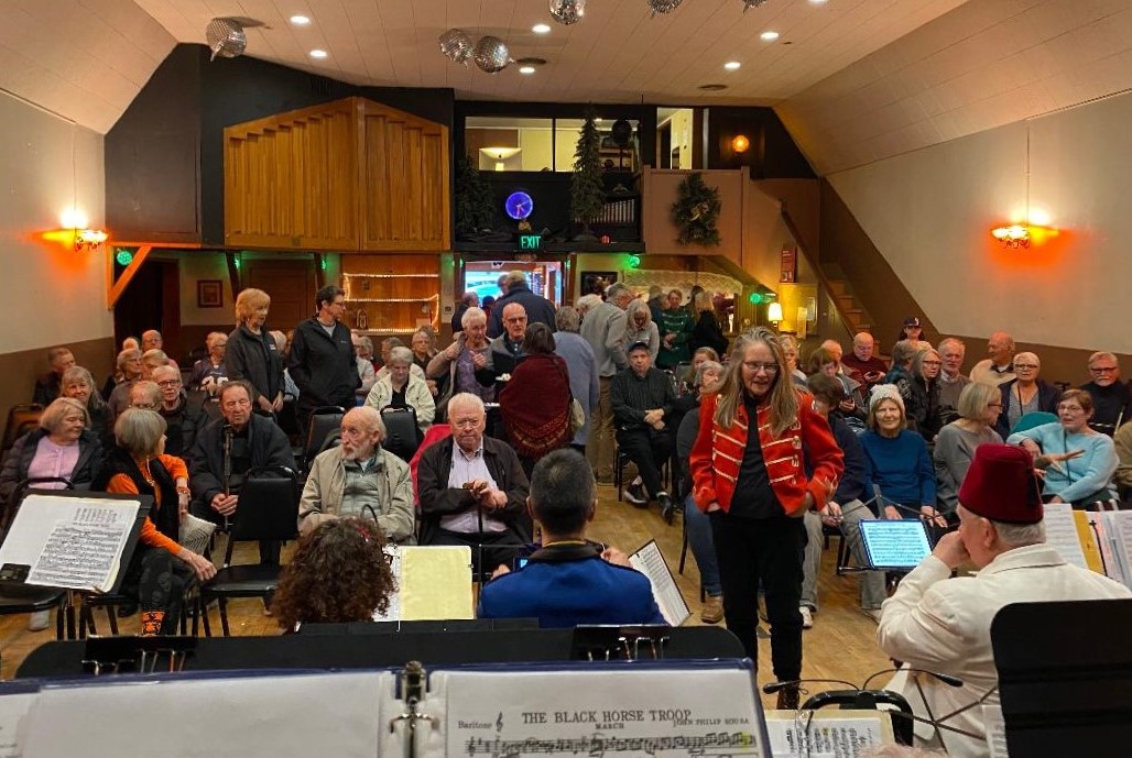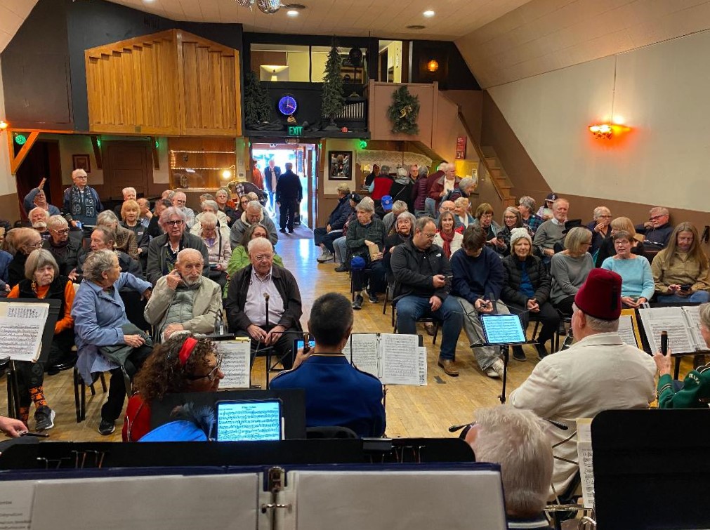 But last May, after only four months, my teeth had straightened sufficiently that I was able to start performing again. My first public appearances were on Memorial Day when I performed at the ceremonies at Veterans Park in Lynnwood and in T-Mobile Park at the Seattle Mariners baseball game before a crowd of 24,000. Since then, on a reduced schedule, I have performed my one-hour trumpet shows at several retirement communities in the Greater Seattle area (scroll down this page). I’ll resume normal scheduling in 2025.