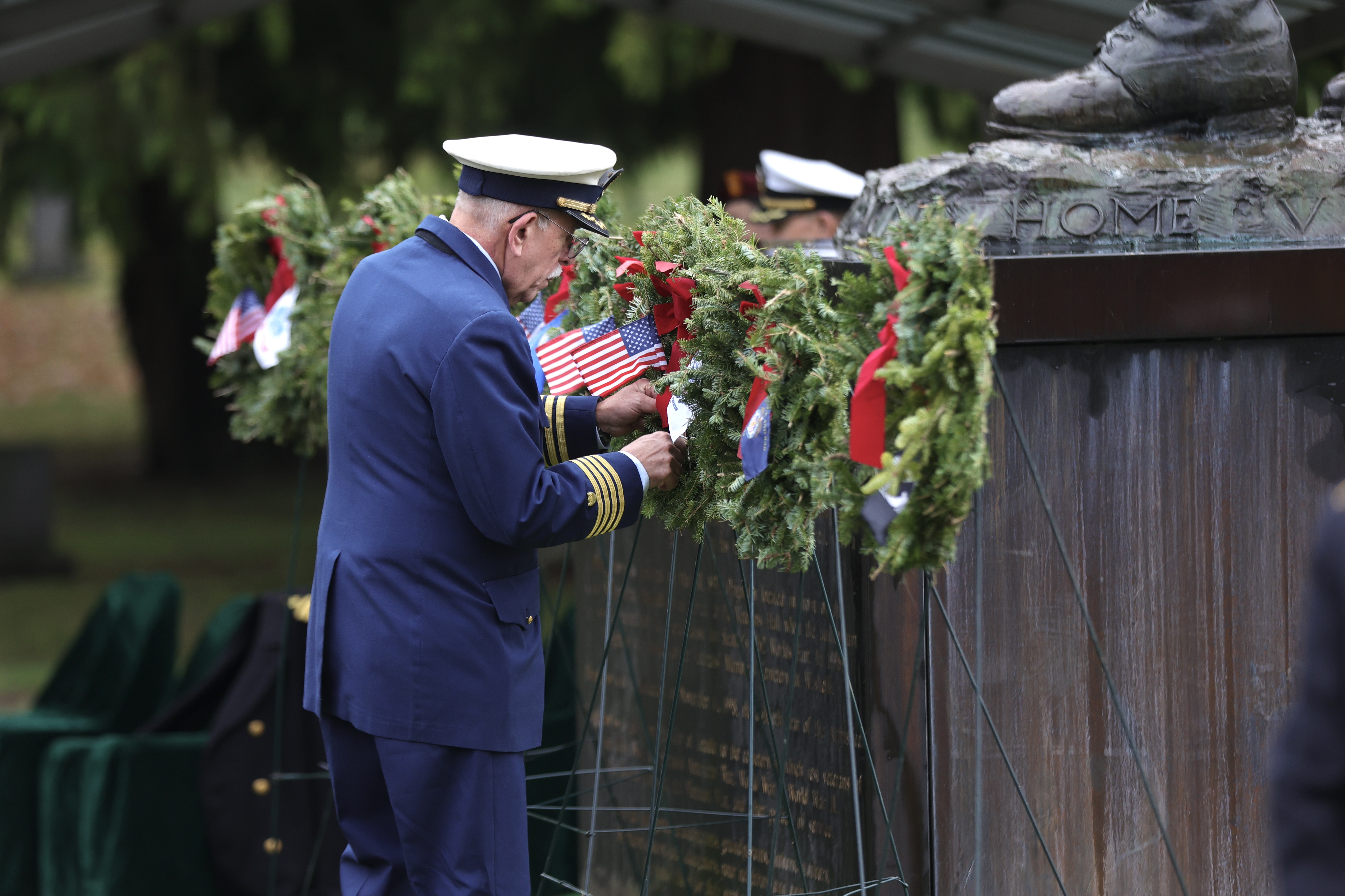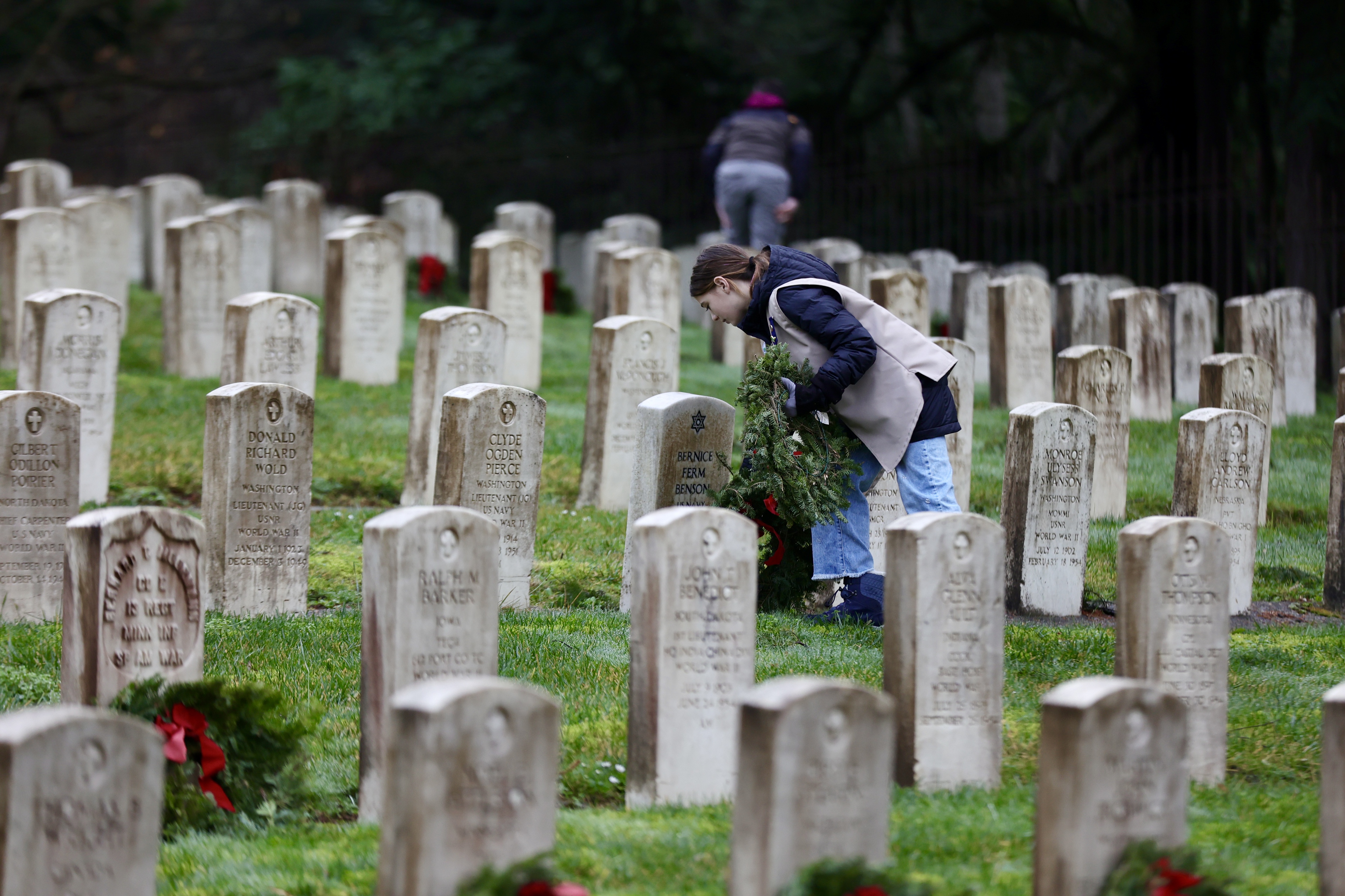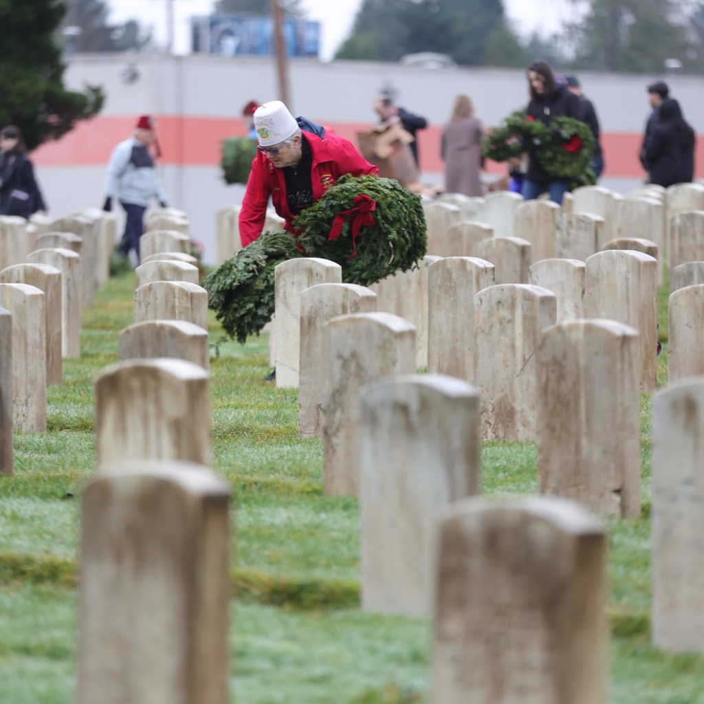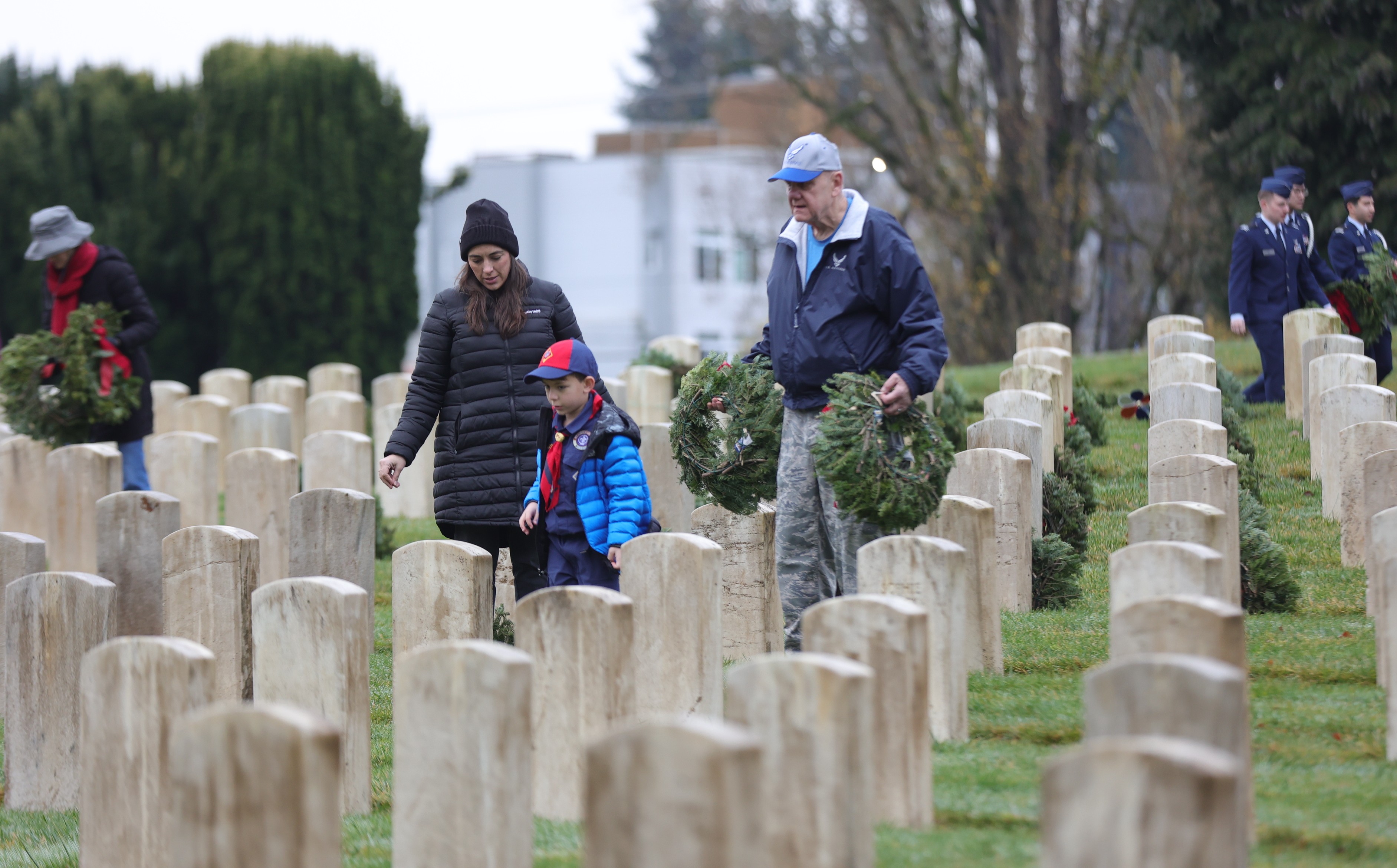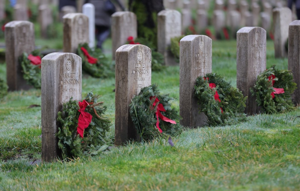 • And, afterwards, the audience became the volunteers who reverently placed approximately 2,000 wreaths on gravestones in the cemetery.