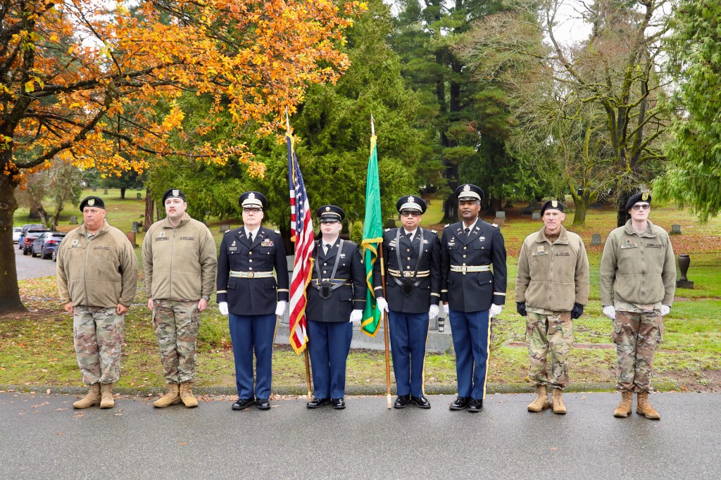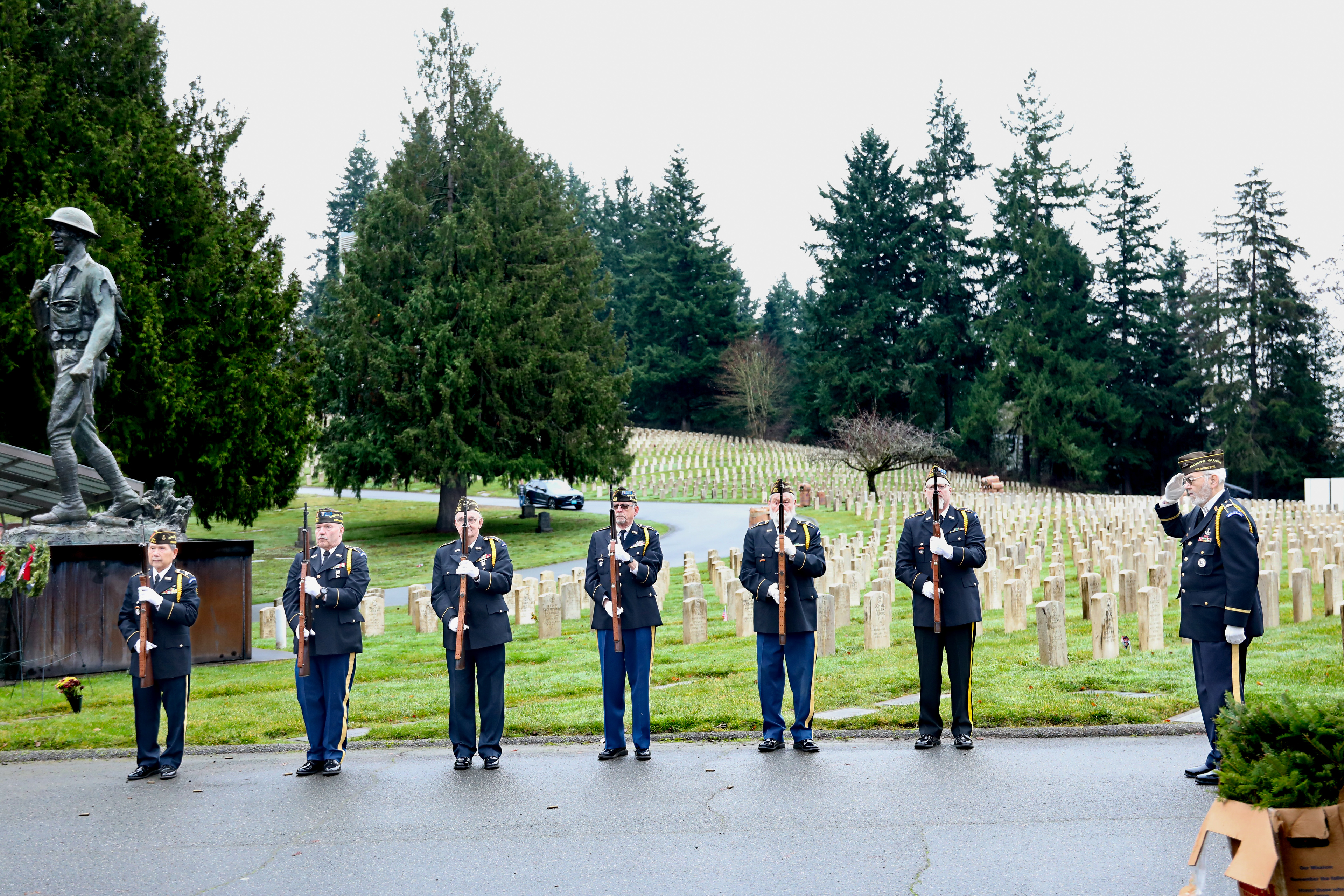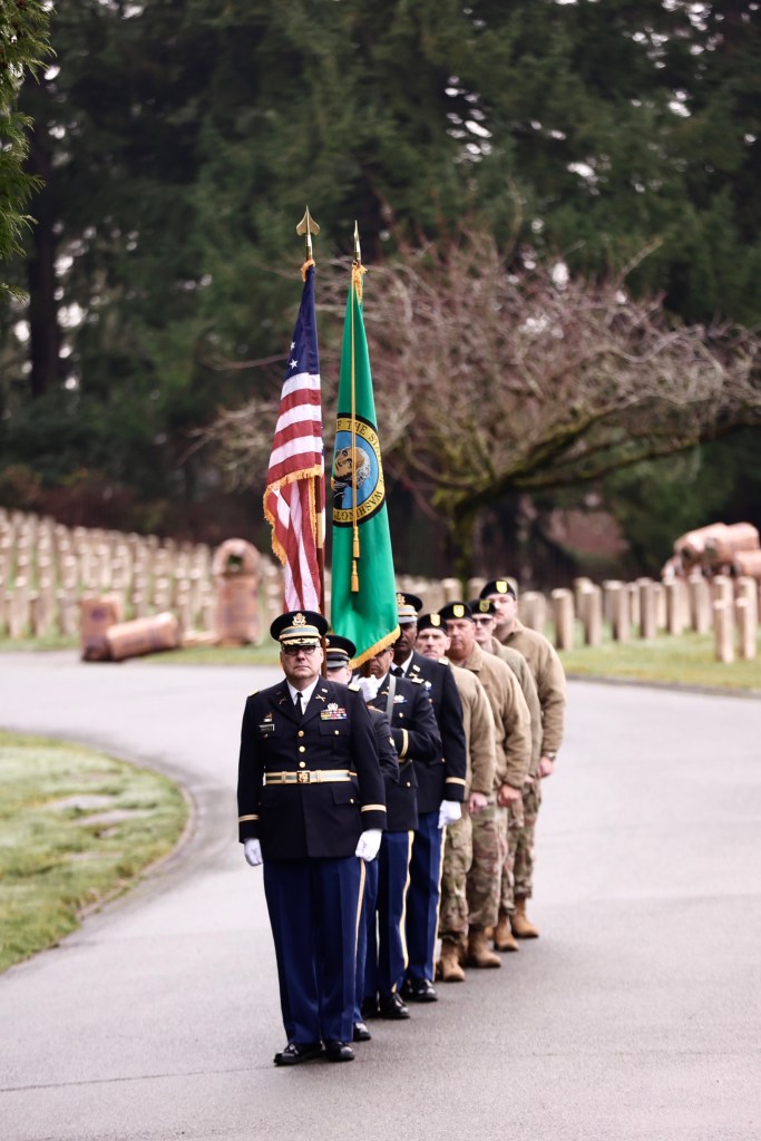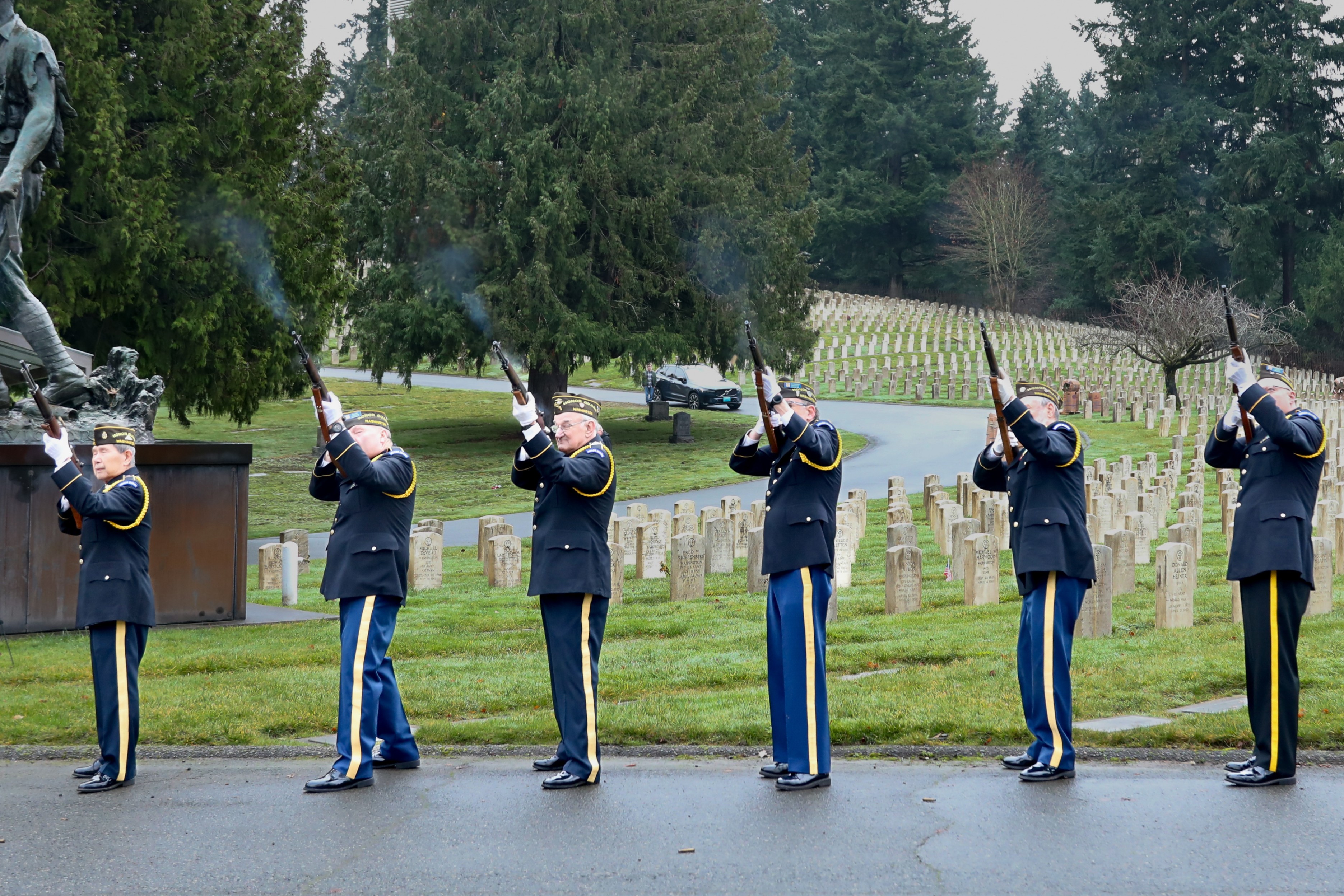 • The Honor Guard of VFW Post 1040 in Lynnwood fired their rifles inspiringly.