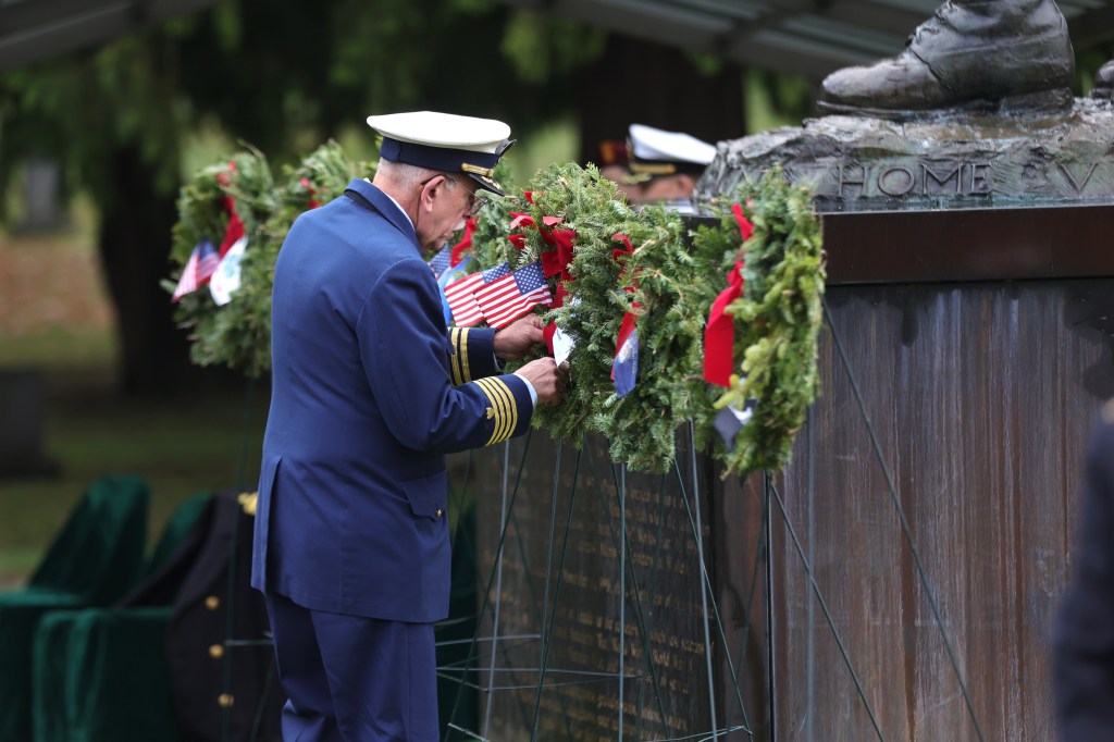 • The 8 men who represented the branches of the military did a superb job of dedicating their respective wreaths with dignity by placing the American flag and rendering a hand salute.