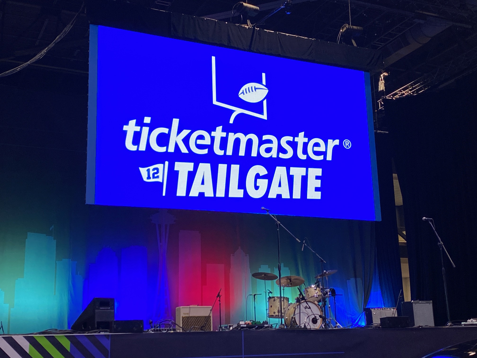 - 9:20 Sound check in the Ticketmaster Tailgate room.