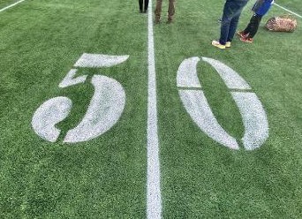 - 9:00 Sound check on the 50-yard line in stadium.