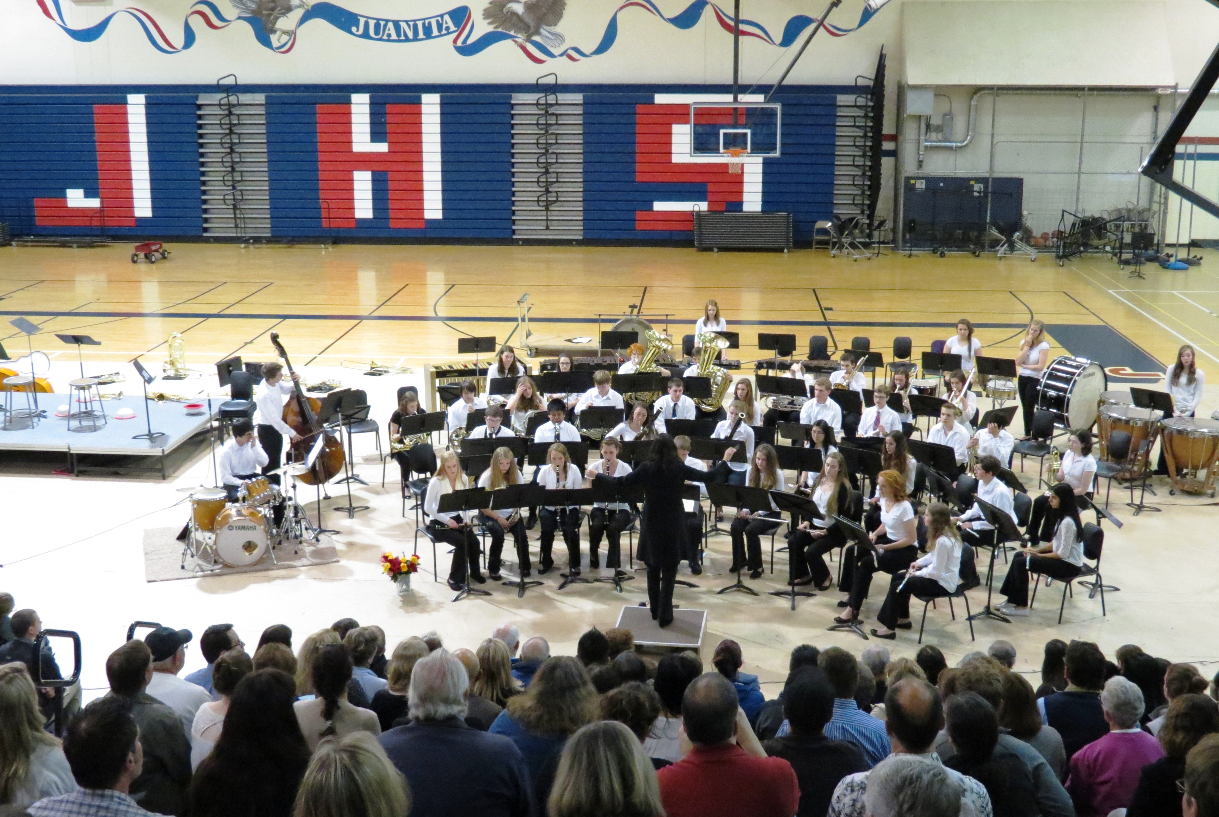 Two of my trumpet students—one current, one past—played in the “Final Concert” of the school year at Juanita High School in Kirkland on 29 May—so I simply had to go! And, as always, I’m very glad I did. One student is in the Concert Band (for freshmen), and the other is in the Symphonic Band (for sophomores). Both bands, plus the Wind Symphony (for juniors and seniors) and the Jazz Band, are under the very capable direction of Mariko Lane. Also on the program were the Concert Choir (all girls) and the Concert Choir (co-ed), directed by Lehua Pischke.