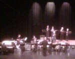 I started snapping photos with my Blackberry phone camera when my student’s group appeared on stage. They sounded good and were well-rehearsed. Several key players seem to form the core of the group. My student is lead trumpeter. In the middle of the second piece, he improvised a solo! Afterwards, his Dad proudly said to me, “He nailed it!” I gave him thumbs up and a broad smile. Those lessons are paying off. Way to go, man!
