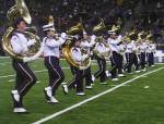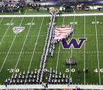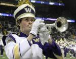 Here is a photo gallery of the game, focused on the UW Husky Marching Band (especially the trumpets) and Cheerleaders, plus all the high school cheerleaders. Field-level shots are by Louis Figueroa, and press-box shots are by Garry Nakayama. Please click on any photo to enlarge it.